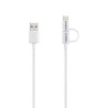 Conexão e versatilidade: O cabo micro USB + USB-C é um modelo 2 em 1 que oferece recarga e transferência de dados a diversos dispositivos, como smartphones e fones de ouvido. | Velocidade de carregamento até 3,0 A: Com carregamento de até 3,0 A, você tem carga rápida e fica menos tempo com seus dispositivos conectados à rede elétrica.¹: ¹ A velocidade pode variar de acordo com a fonte de alimentação e dispositivo utilizados. | Cabo com comprimento de 1,2 m: O cabo de 1,2 m proporciona mais comodidade para conectar seus dispositivos, e liberdade de uso, mesmo distante da tomada. | Revestimento emborrachado: O cabo micro USB + USB-C é produzido com revestimento emborrachado (PVC), garantindo maior resistência e durabilidade do produto.