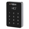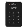 O acesso pode ser feito por senha ou proximidade (RFID 125 kHz) ou ainda por acesso combinado (senha + RFID).