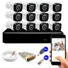 Kit 12 câmeras full hd 1080p 2mp + dvr giga security + app grátis de monitoramento, câmeras 20m infravermelho de visão noturna + fonte, cabos e acessórios